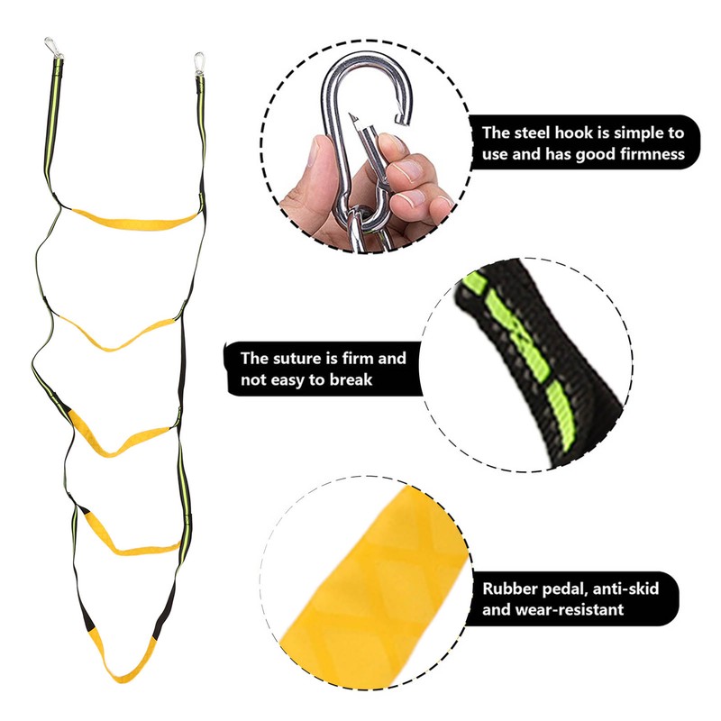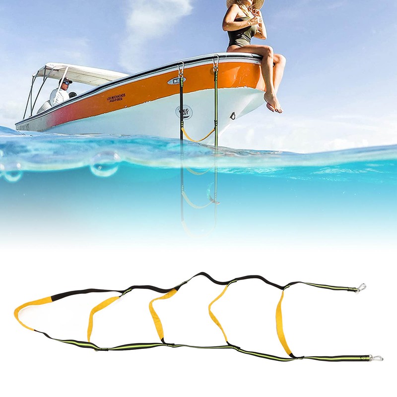 1、Reliable Material: This marine rope ladder is made of nylon material, it is durable, UV resistant, light in weight but with strong load capacity for long term use. 2、Wide Application: This boat rope ladder is perfect for inflatable boats, kayaks, motorboat, canoes, etc. Not only can be used as a boat ladder, but can also be used to add extra steps to any existing ladder. 3、Outstanding Features: This marine rope ladder comes with a climbing buckle, which can be installed without other auxiliary tools. The foldable design makes it easy to carry and store. 4、Eye Catching Color: The boat rope ladder is in conspicuous color. Even in the dark, you can clearly see the position of the boat ladder and return safely to the ship. 5、Thoughtful Detail: The steps are designed to be non slip, providing you with reliable protection when using it. The distance between each ladder is moderate, which is convenient for people of all ages to use.