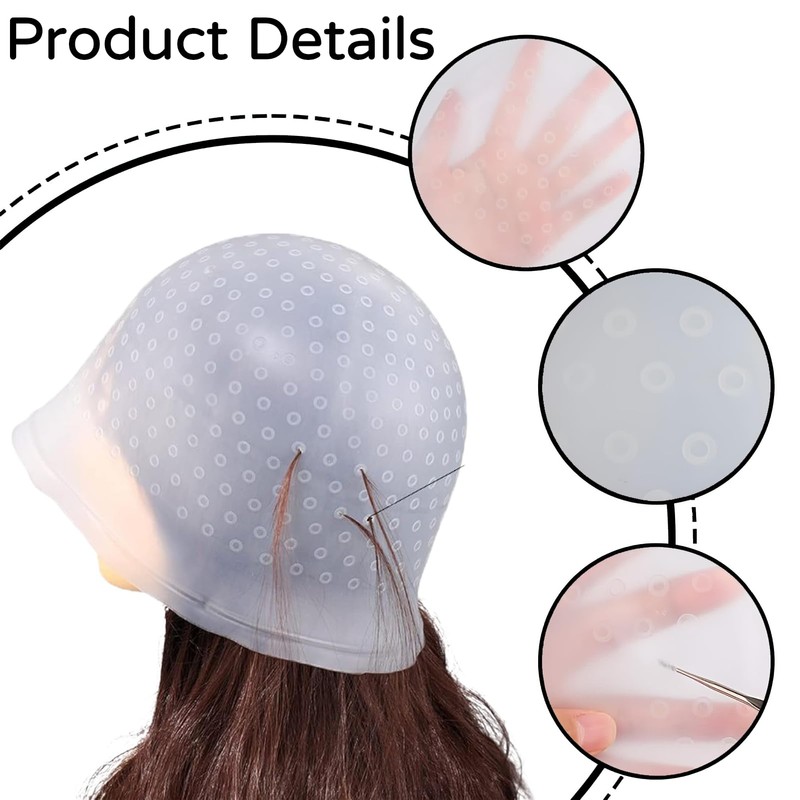 - 【Lieferumfang】Sie erhalten ein silikon strähnchenhaube mit Loch,eine Häkelnadel,3 Stück Haarfärbekamm-Werkzeuge.Dieses komplette Haarband-Set kann mehrfach für mehrere Haarfärbungen verwendet und recycelt werden.