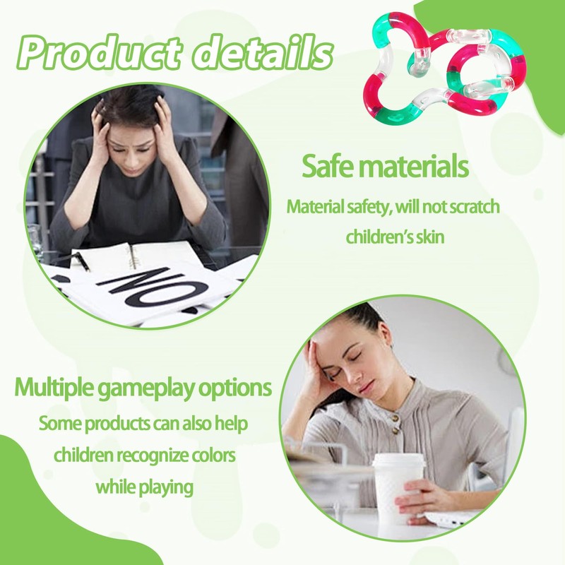 • Diese Tangle Fidget Toys werden mit einer speziellen Technik hergestellt, die es ermöglicht, dass die einzelnen Segmente flexibel und einfach zu bewegen sind. Ihre äußere Gestaltung ist vielfältig und ansprechend, mit bunten Farben und unterschiedlichen Formen. Die knotenartigen Strukturen und die kleinen, beweglichen Teile machen sie nicht nur attraktiv, sondern auch spannend für das Spielen.
