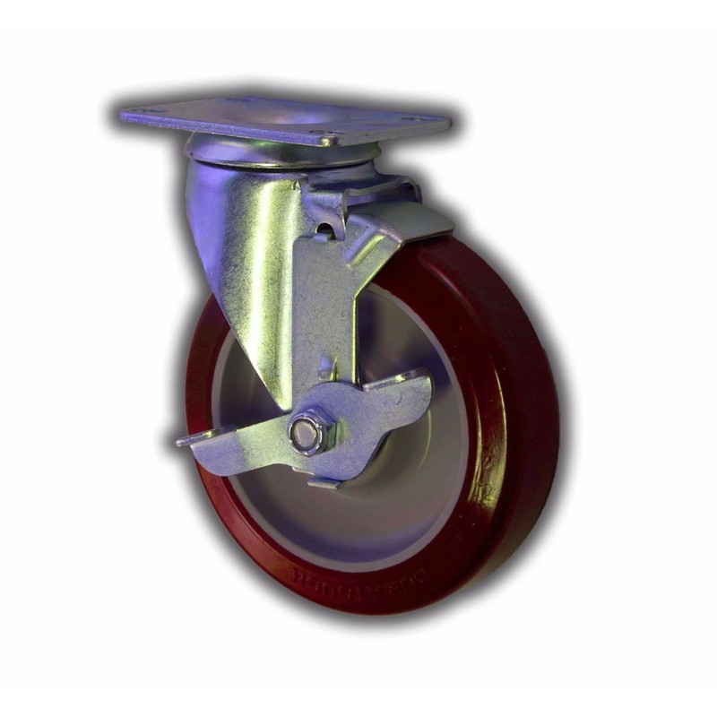 5" Swivel Caster with Maroon Polyurethane Wheel & Top Brake 1200# - 4 Pack