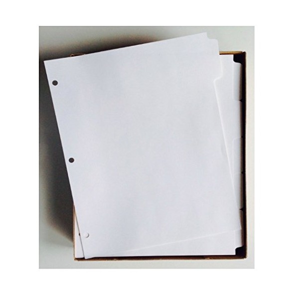 5-tab, 6 sets of white 3-ring die cut index divider sheets.