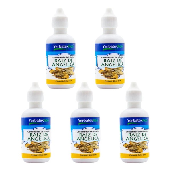 El producto es un suplemento alimenticio en formato de gotas, que contiene un extracto de la raíz de angélica. Esta planta ha sido utilizada tradicionalmente por sus propiedades medicinales, principalmente para apoyar la salud digestiva y otros padecimientos. Este paquete incluye 5 frascos de 30 ml cada uno.