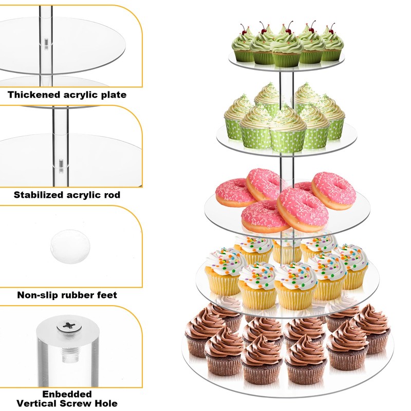 - MULTIFUNCTIONAL DESIGN: Our tiered cupcake stand has a removable design, easy to organize and does not take up storage space. Each tier of acrylic plates can be freely combined to form different tiers of cupcake stands.
