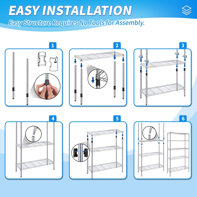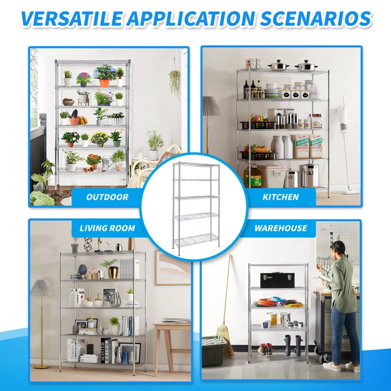 5-Tier Storage Shelves Wire Metal Shelving Unit 1250 Lbs Loading Capacity Chrome