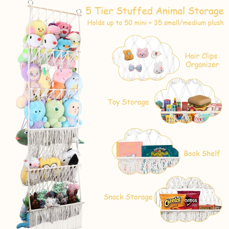 Special Feature:Aesthetic Boho Decoration, Upgraded Dense Mesh for Mini & Small Squishmallow, Easy Installation, 5 Tiered Design & Large Storage Capacity, Space Saving Stuffed Animal Holder