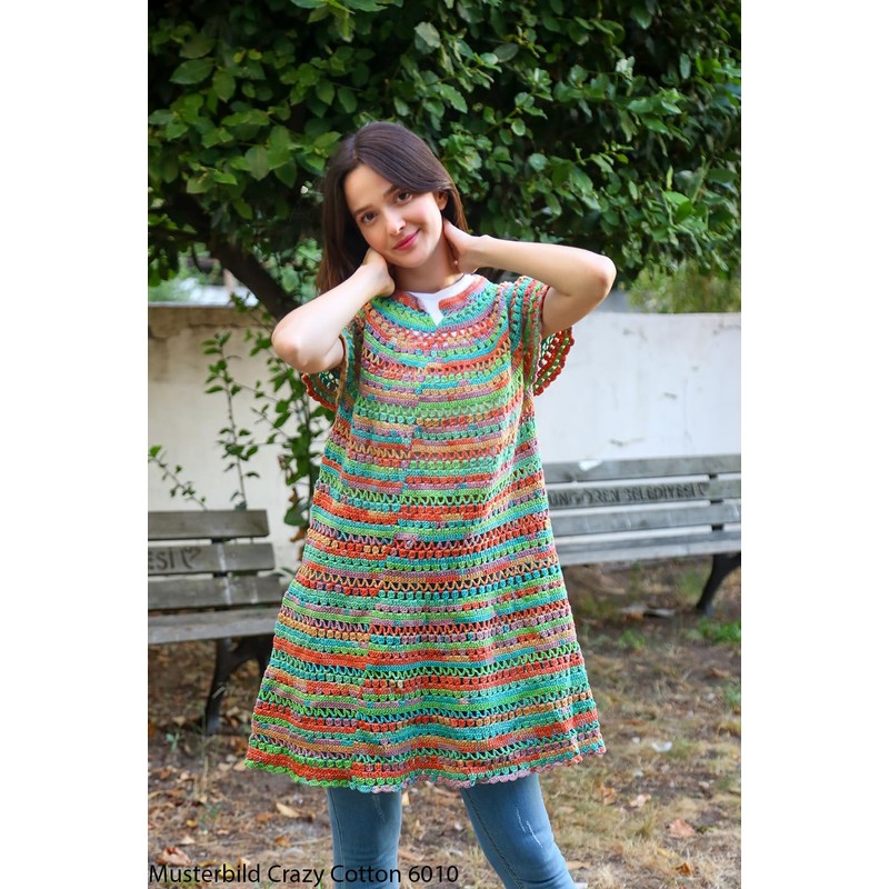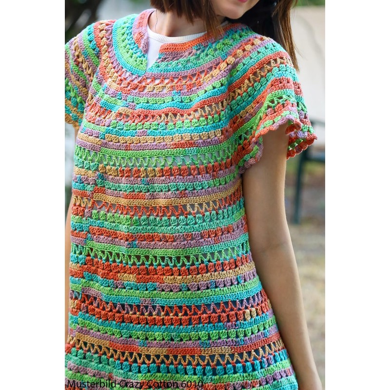 5 x 100 g Wollbiene Crazy Cotton Batik, 500 g with Colour Gradient, 55% Cotton, Multicoloured Knitting Wool, Crochet Wool, Wool, All-Year Wool (5040 Rainbow Pastel)