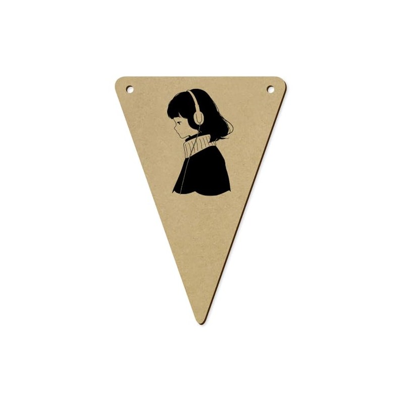 5 x 140mm 'Girl with Headphones' Wooden Bunting Flags (BN00083310)