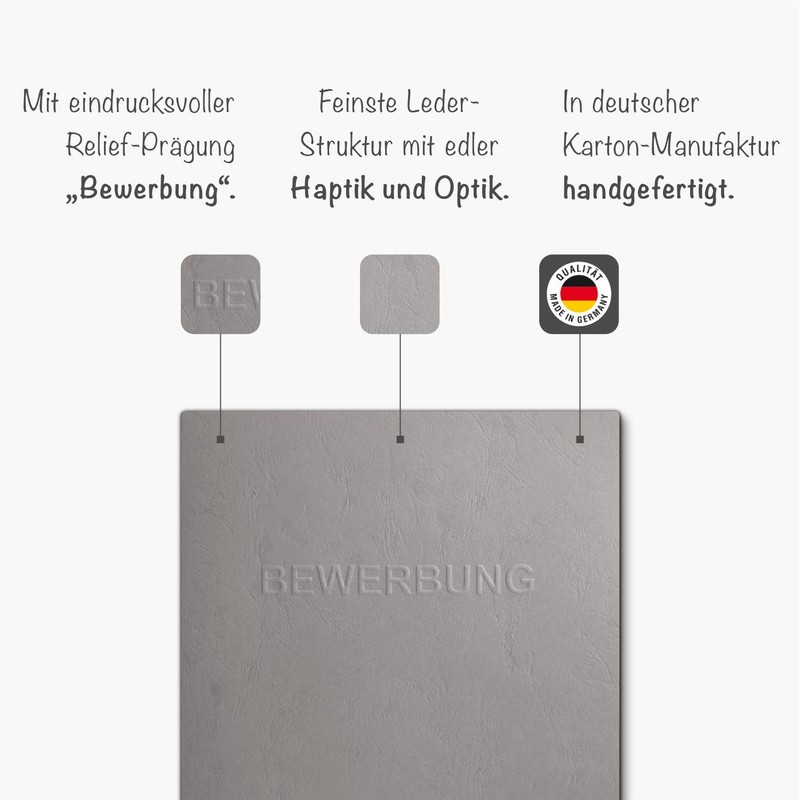 • Finest leather structure: the application folder is made of fine dirt-repellent and robust cardboard in leather look and impresses with an impressive relief lettering "BEWERBUNG".