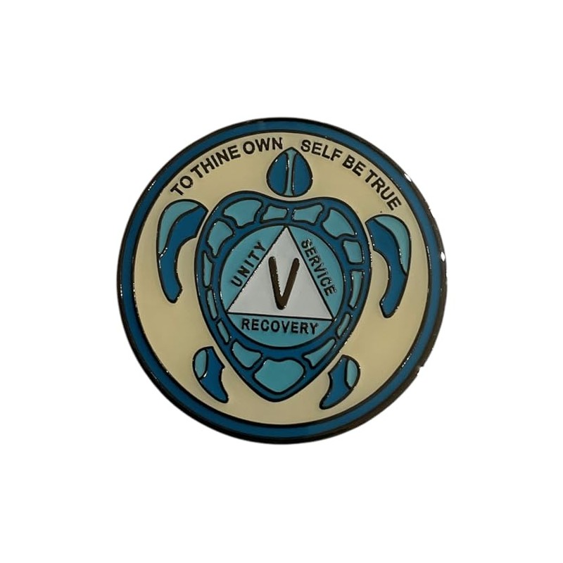 5 Year AA, Recovery Sea Turtle Medallion, Sobriety Token, Blue and Gold