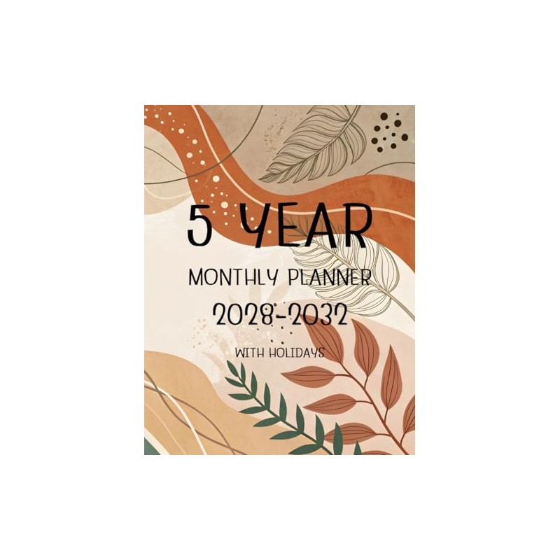 5 year monthly planner 2028 -2032: Five Year Calendar Schedule Agenda and Organizer January 2028 to December 2032 with holidays nature abstract