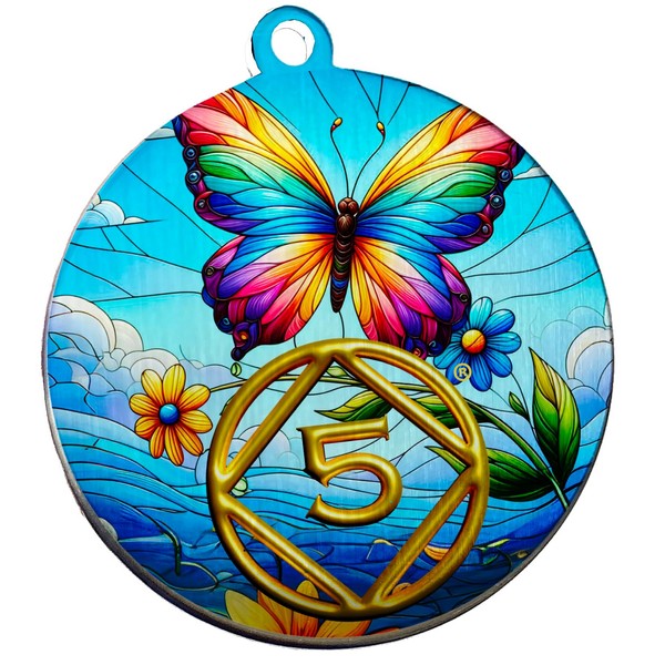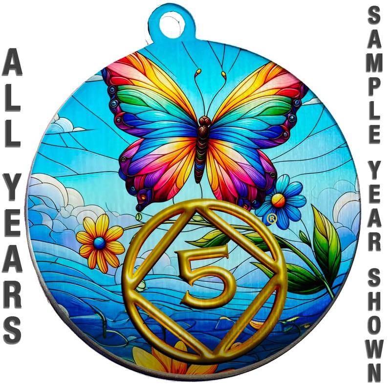 5 Year Recovery Coin, NA Narcotics Anonymous Chip, Sobriety Butterfly Chip, NA Coin