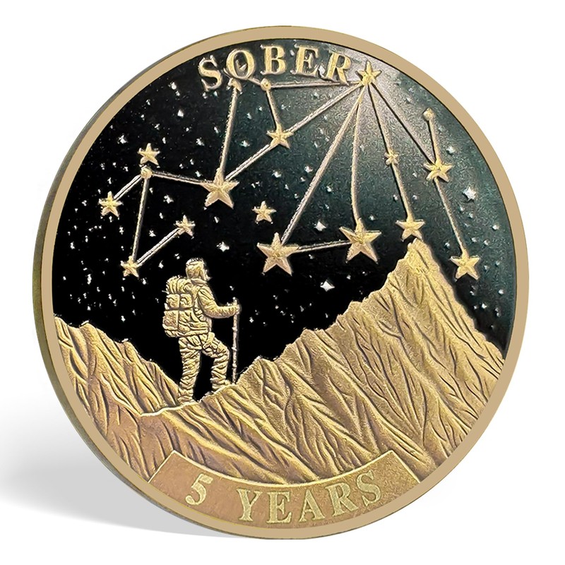 - Celebrate Milestones This 5 Year Sobriety Coin is more than just a token; it marks a significant achievement in your recovery journey. Celebrating the five year of sobriety is a profound accomplishment, symbolizing your commitment to a healthier, addiction-free life. This coin serves as a tangible reminder of your progress and motivation to continue on your path with determination.