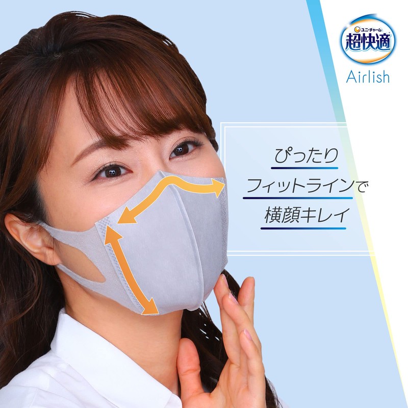 【まとめ買い】超快適マスク エアリッシュ ライトグレー 風邪・花粉用 不織布マスク ふつうサイズ 50枚入(10枚入×5個) オールシーズン カラーマスク〔PM2.5対応〕(ウイルス飛沫カットフィルタ)〔全国マスク工業会 会員マーク表示〕ユニチャーム