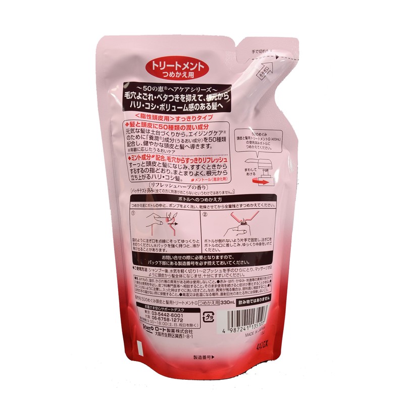 50の恵 髪ふんわりボリュームトリートメント 脂性頭皮用 つめかえ用 330mL