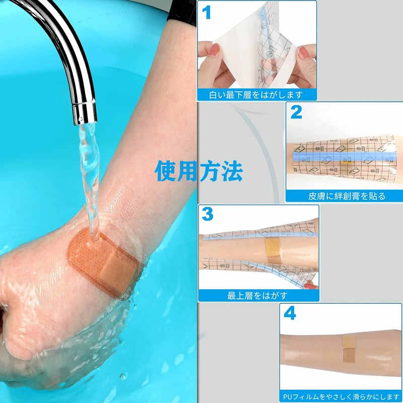 - 【完全的に防水】ポリウレタン(PU)材料から出来上がったフィルム、柔らかくて0.1mm薄い、肌に貼るとくっつく貼り付け、水が滲み込まなく、キズ口に完全的に防水され。