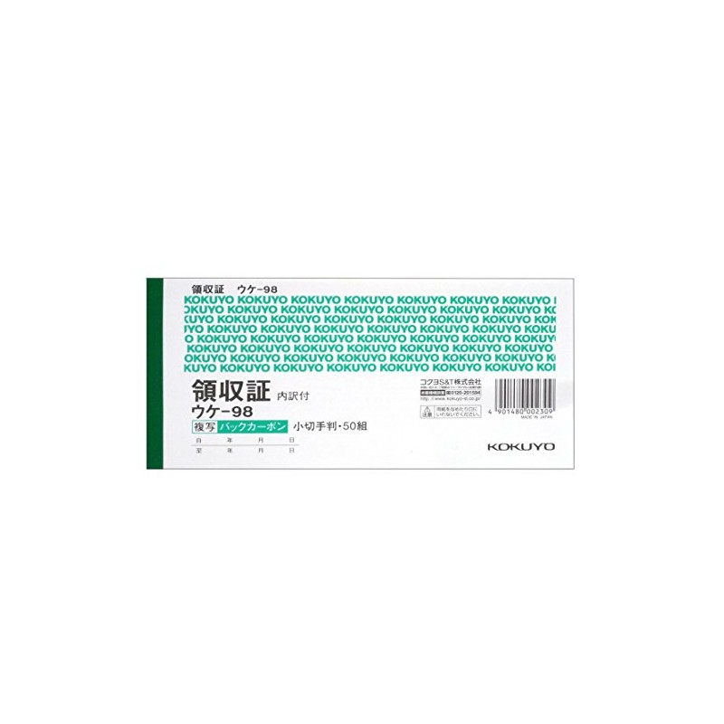 コクヨ 領収書 複写伝票 小切手判 横型 50組 ウケ-98