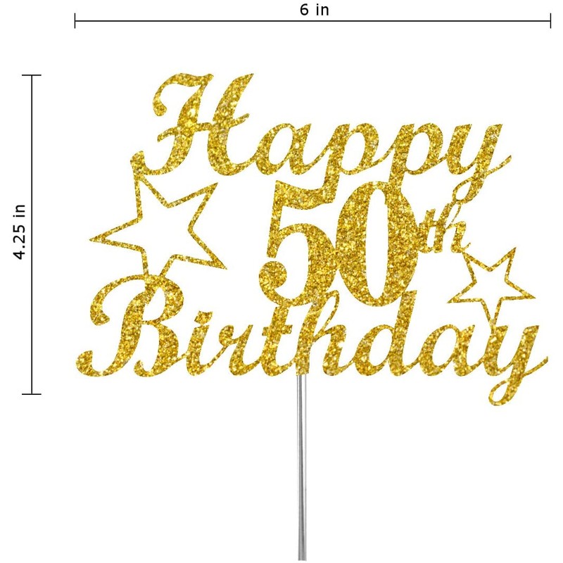 50 Birthday Cake Topper Gold Glitter, 50th Party Decoration Ideas, Premium Quality, Sturdy Doubled Sided Glitter, Acrylic Stick. Made in USA