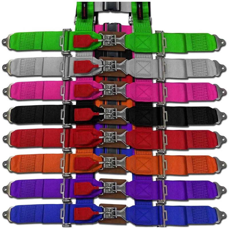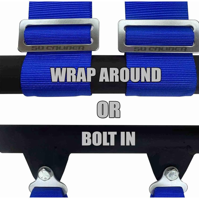 - 50 Caliber Racing 4 point harness, available in 8 vibrant colors, adds an impressive, high-performance aesthetic to your vehicle, making it look both sleek and race-ready.