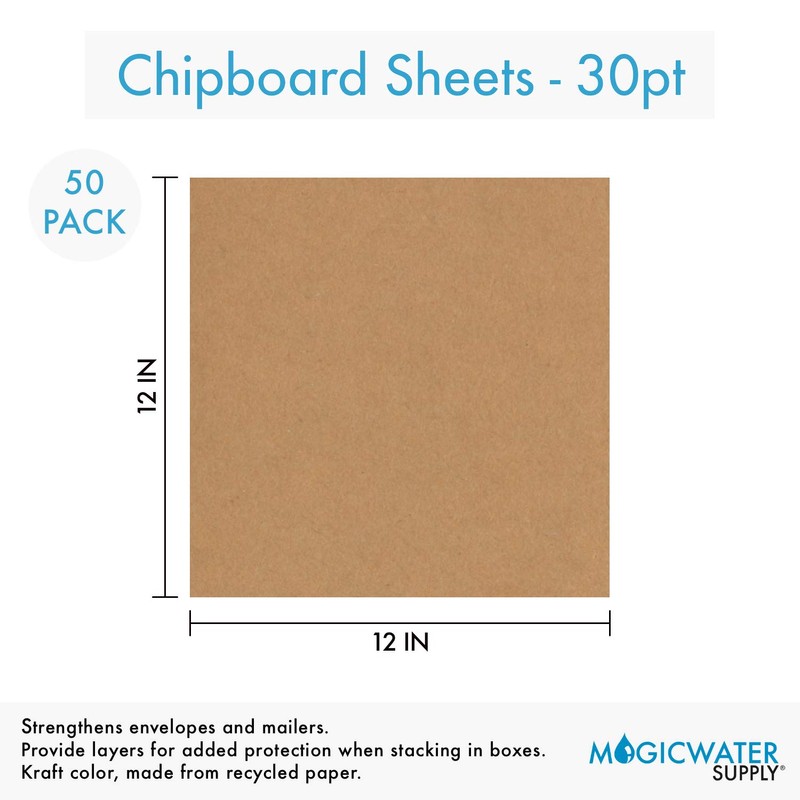 50 Chipboard Sheets 12 x 12 inch - 30pt (Point) Brown Kraft Cardboard for Scrapbooking & Picture Frame Backing (.030 Caliper Thick) Paper Board | MagicWater Supply