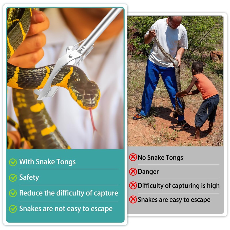 50" Collapsible Stainless Steel Snake Grabber Tool: Multi-Functional Hook, Tongs, Pole, Reacher for Safe Snake Handling and Rattlesnake Catching