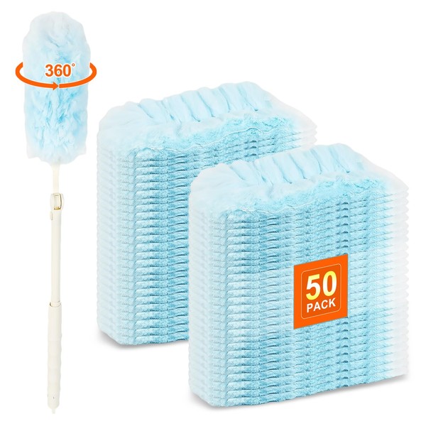 50 Count Heavy Duty Duster Refills for Swiffer Duster, Multisurface 360 Dusters Replacements with 3 ft Extended Handle, Unscented Disposable Dusters for Cleaning Home, Blinds, Ceiling Fans, Furniture
