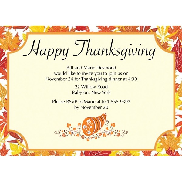 50 Custom Leaves Themed Thanksgiving Invitations with Envelopes