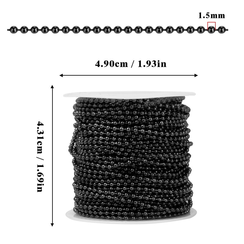 - Package includes: 50 feet black stainless steel beaded chain in a roll, 30 pieces matching connectors.