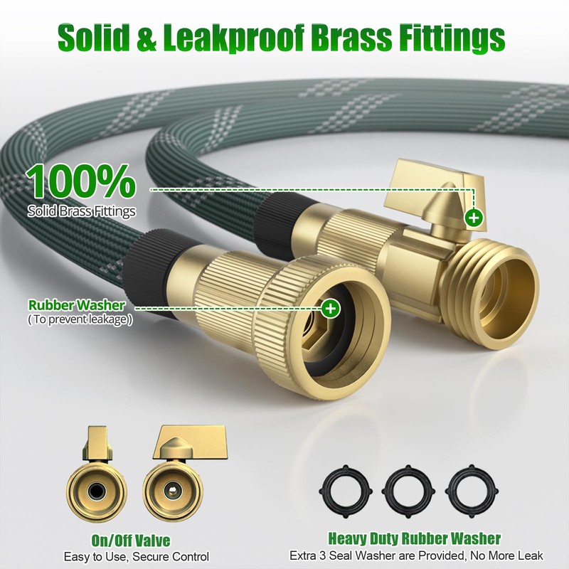 - SOLID & LEAK - PROOF BRASS CONNECTORS - Featuring solid brass connectors, leak - proof rubber washers, anti - bending rubber protectors, and being well - sealed with an aluminium buckle, the robust hose fittings are crack - resistant, corrosion - resistant, and leak - resistant. They are far more durable than old - fashioned plastic fittings. These fittings are compatible with standard garden faucets, spray nozzles, and sprinklers. Additionally, there is an easy - to - use copper shutoff valve on the male fitting side, allowing you to turn the water on and off quickly.