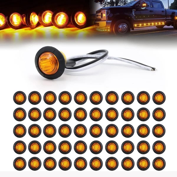 50 Luces LED de 3/4 Pulgadas 12V para Luces de Señalización Delanteras y Traseras IP67 Impermeables para Camiones, Autobuses, Remolques, Furgonetas, Caravanas, Barcos, ámbar