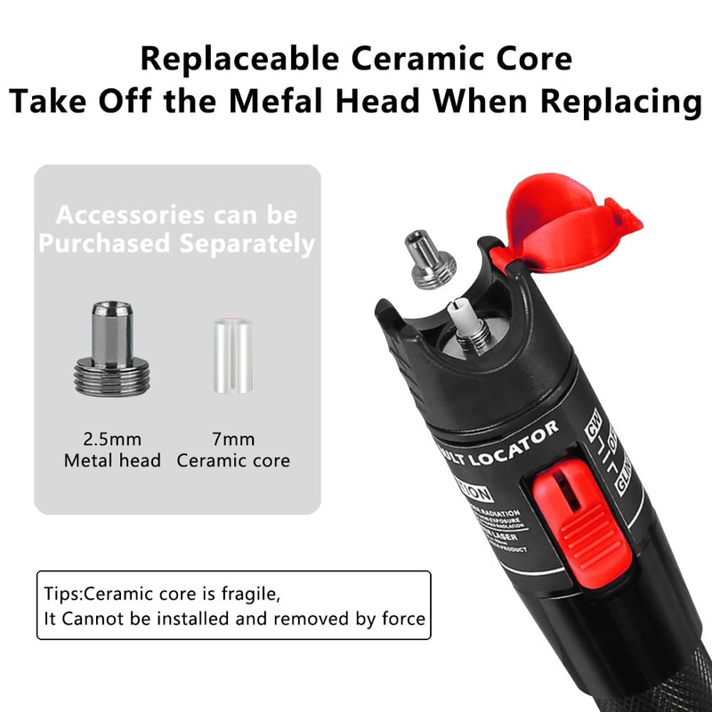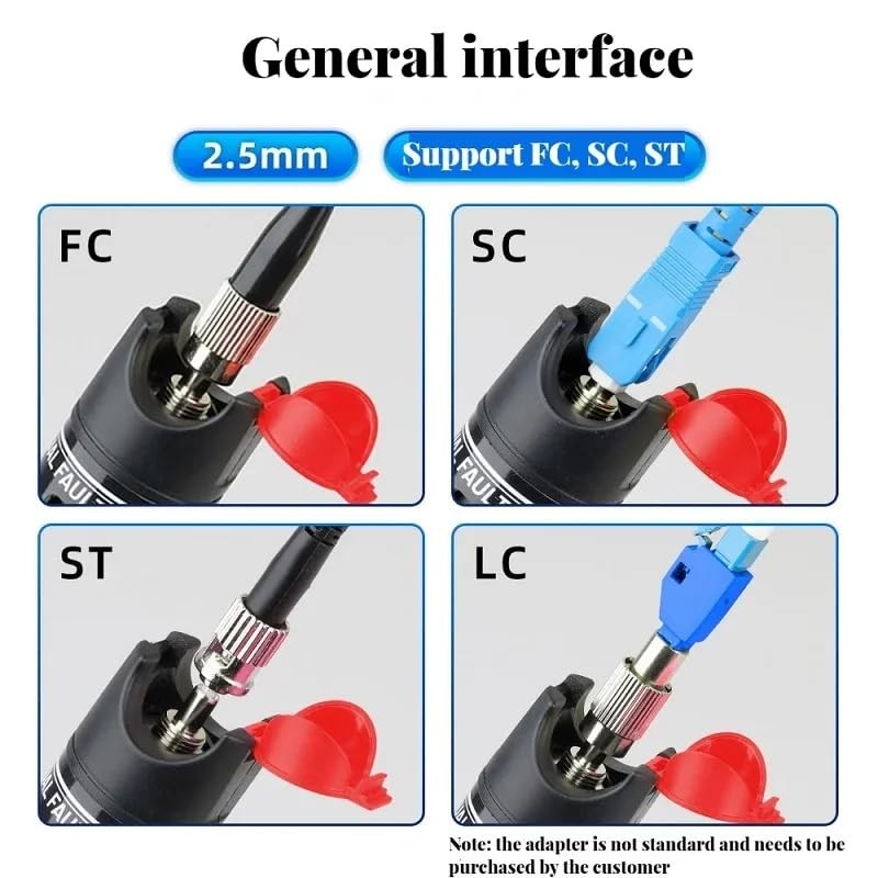 - 2.5mm Universal Connector This visual fault locator is designed for a 2.5mm universal fiber interface and is compatible with a variety of FC/ST/SC connectors and various forms of fiber optic cables.