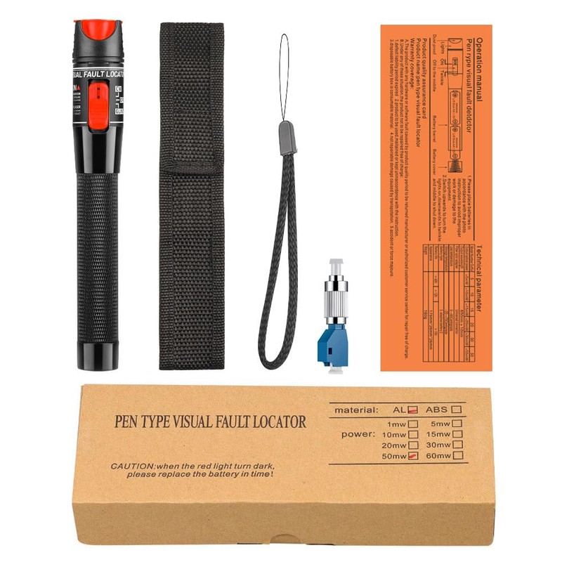 50 MW FTTH Fibre Optic Tester, Visual Fault 50 km Locator Fibre Optic Cable Tester Fibre Optical, VFL Fibre Optic Tester, Fibre Optic Cable Tester with Singlemode 9/125 um FC Male to LC Female Adapter