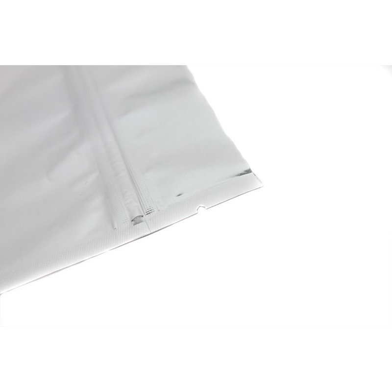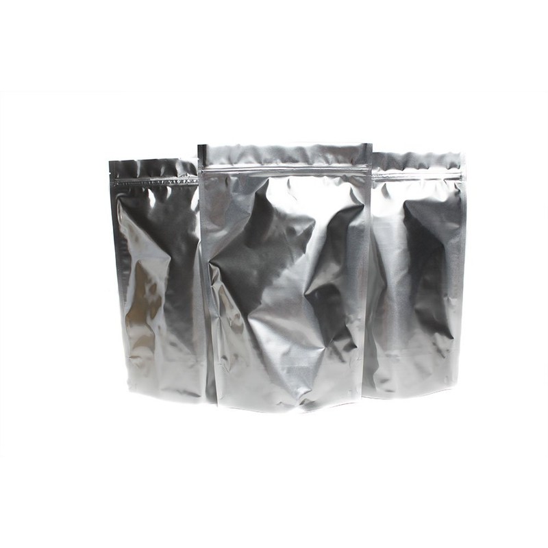 50 Mylar Stand Up Bags (4.3mils, Silver) 7.625" x 11.75" x 4" with Zipper and Tear Notch, with 50 Free 500cc Oxygen Absorbers