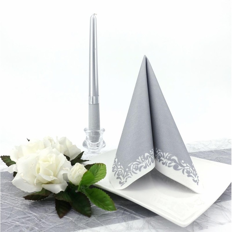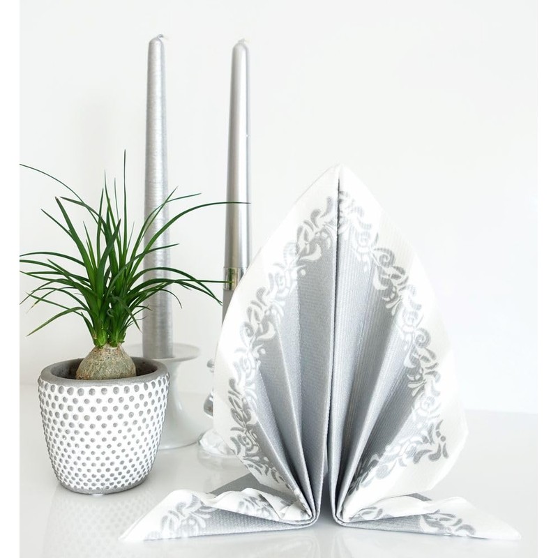 50 Napkins Fabric-Like – Romantic; Colour: Silver; Size: 40 x 40 cm