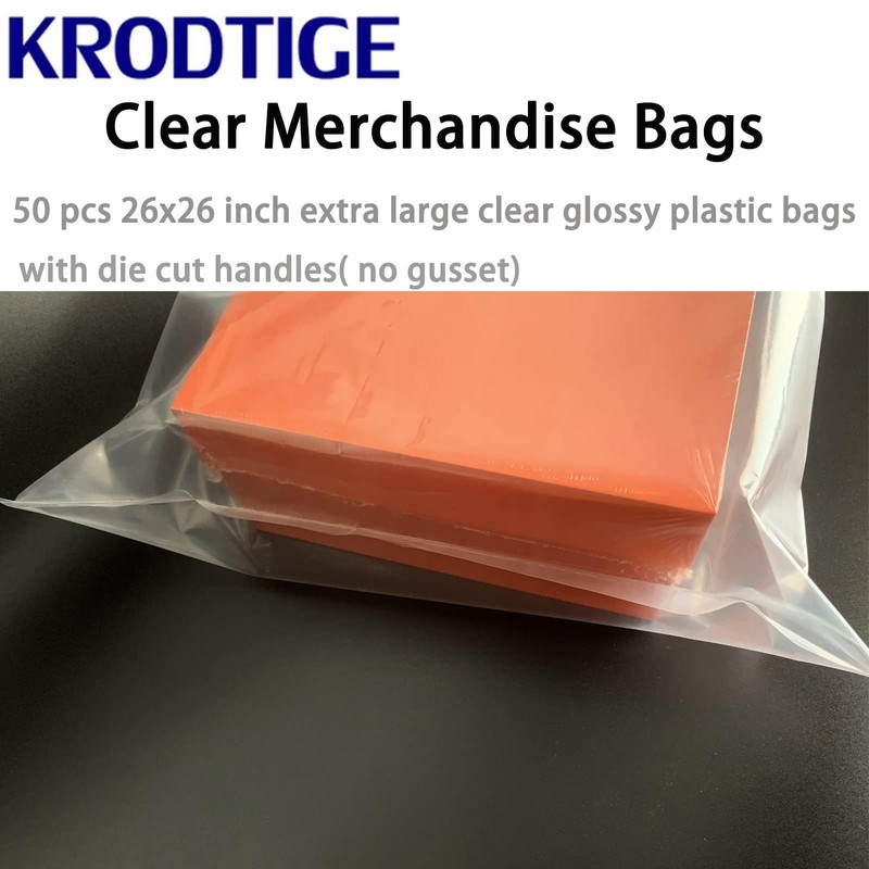 - Package Include:Includes 50 pcs extra large clear glossy plastic bags with die cut handles( no gusset),each 3 mil thick bag measures 26"x26",perfect size for use as a gift bag, or boutique bag.