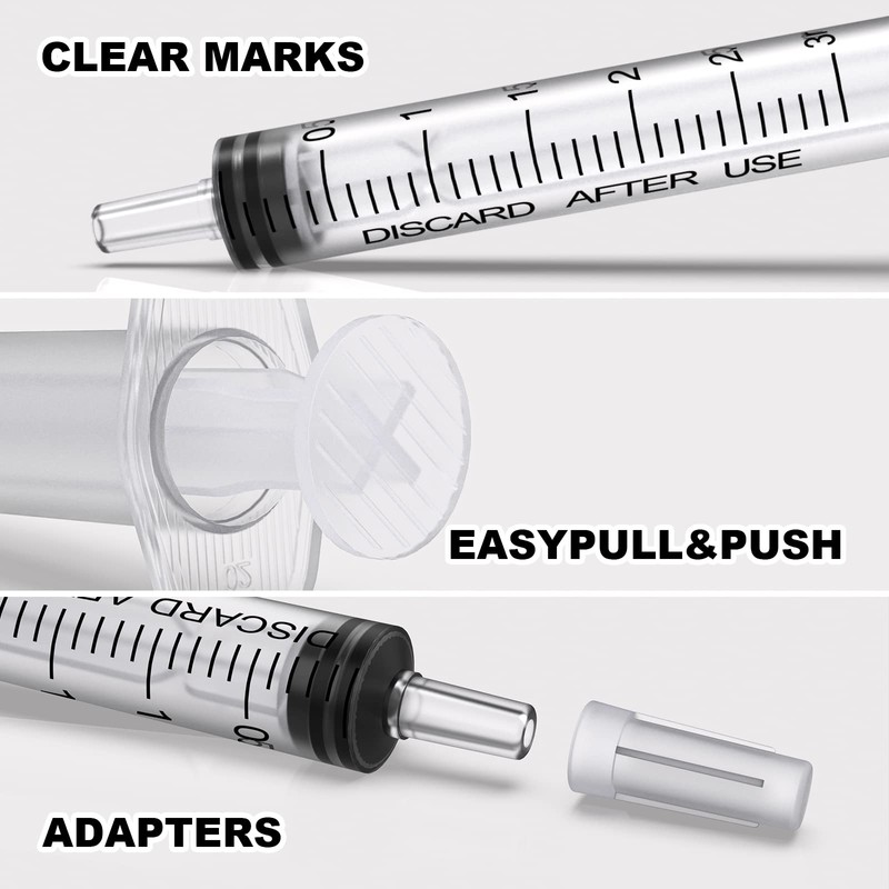- 【Package Includes】50 pcs 3 ml syringes without needle, each sterile syringe comes with a tip cap, enough for use or replacement.