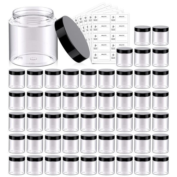 50 Pack 4 OZ Plastic Jars Round Clear Cosmetic Container with Black Lids, Eternal Moment Slime Jars for Lotion, Cream, Ointments, Makeup, Eye shadow, Rhinestone, Samples, Pot, Travel Storage