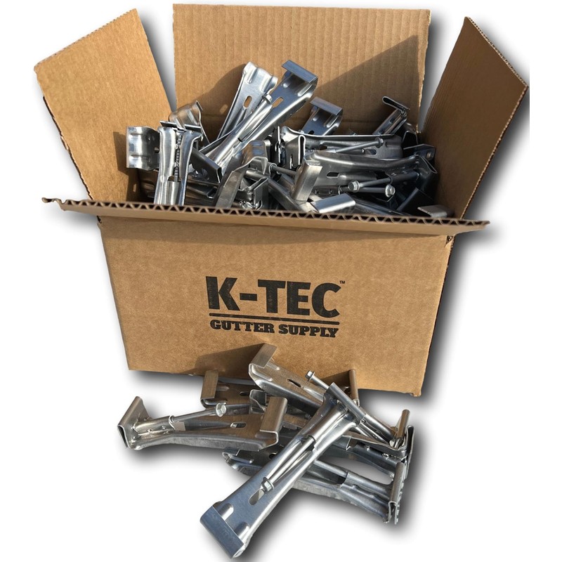 - EASY INSTALLATION - K-TEC Gutter Hangers with Pre-inserted Screw make installing 5 Inch K-Style Aluminum Gutter hangers simple! Their heavy duty clip fasteners provide secure support without the hassle of dropping screws. Get your rain gutters installed quickly and easily with these hidden hangers.