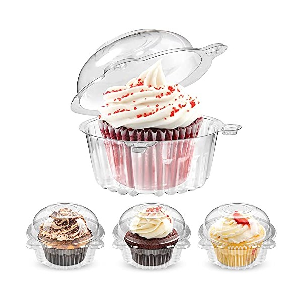 50 Pack Cupcake Containers Individual, Clear Plastic Single Muffin Holders Boxes Cups Cases Pods for Home Baking, Wedding, Baby Shower, Holiday Party