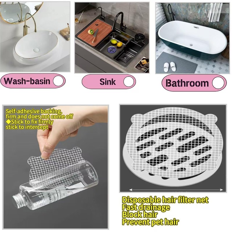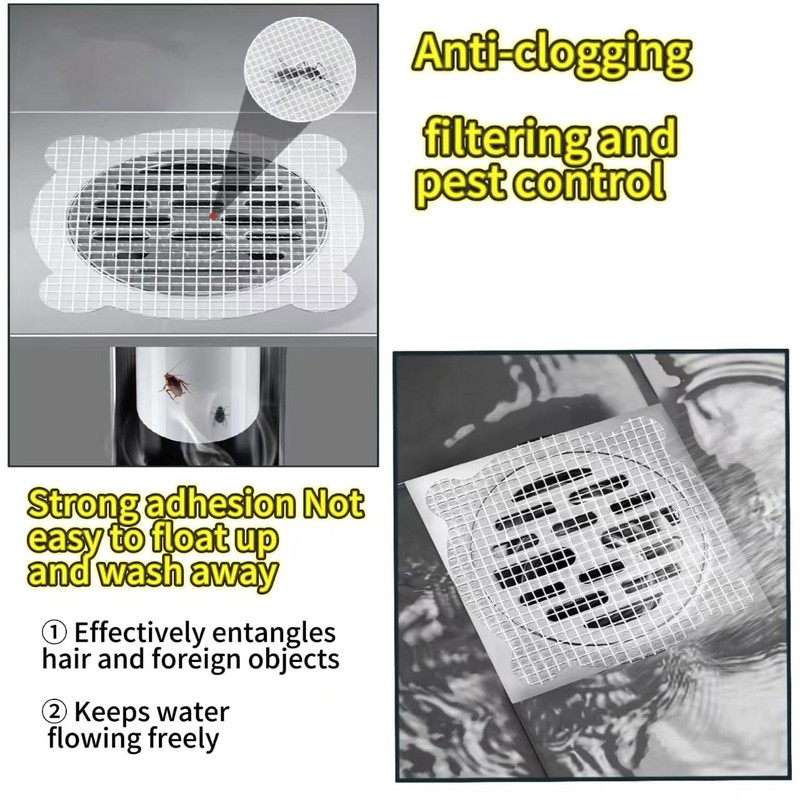 - Widely used: Disposable floor drain stickers can prevent hair, fibers, small debris, cockroaches and other pestsfrom entering the floor drain. suitable for bathroom, bathtub, sink, kitchen, drains.