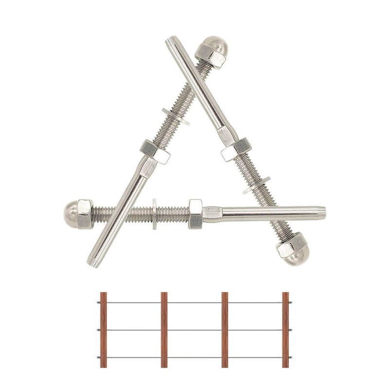 Commonly used for tensioning wire rope runs such as stainless steel wire rope in cable railing systems.