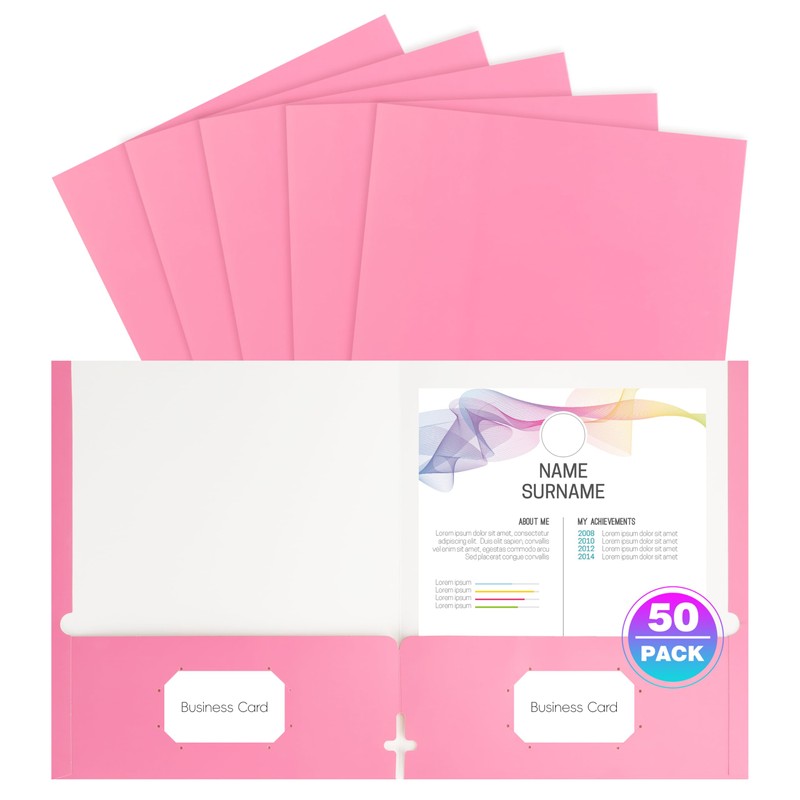 50 Pack Folders with Pockets, Pocket Folders Fit Letter Size Paper, with Business Card Slot, 2-Pocket Folder for School Office Home Business