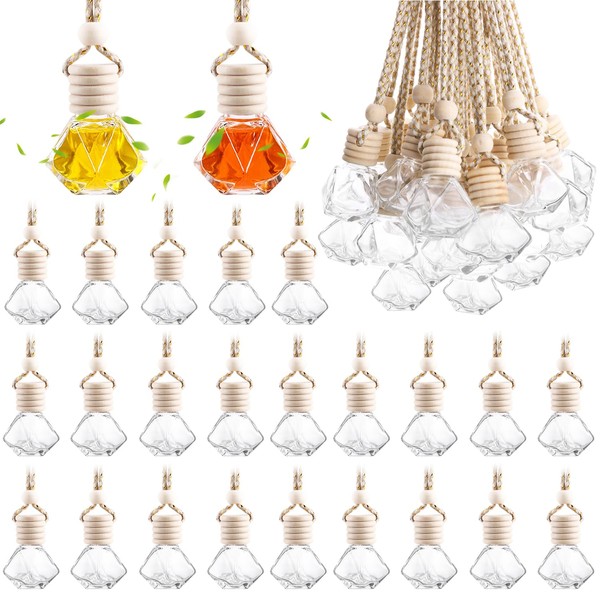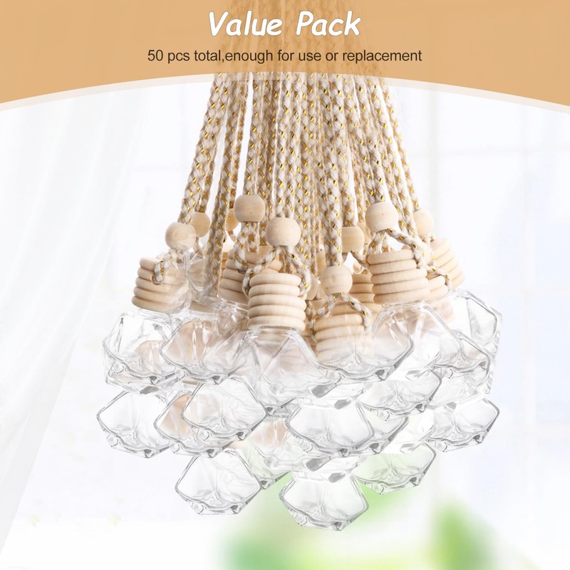 50 Pack Hanging Car Air Freshener Bottle Empty Essential Oil Diffuser Glass Bottles Perfume Aromatherapy Fragrance Pendant Diffuser Bottles Auto Ornaments Decor
