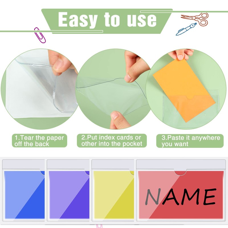 - Adequate Quantity: you will get 50 pieces of self adhesive card pockets made of plastic with top side open for loading, suitable to neatly organize and protect your cards and stick them to whiteboards, monitors and so on