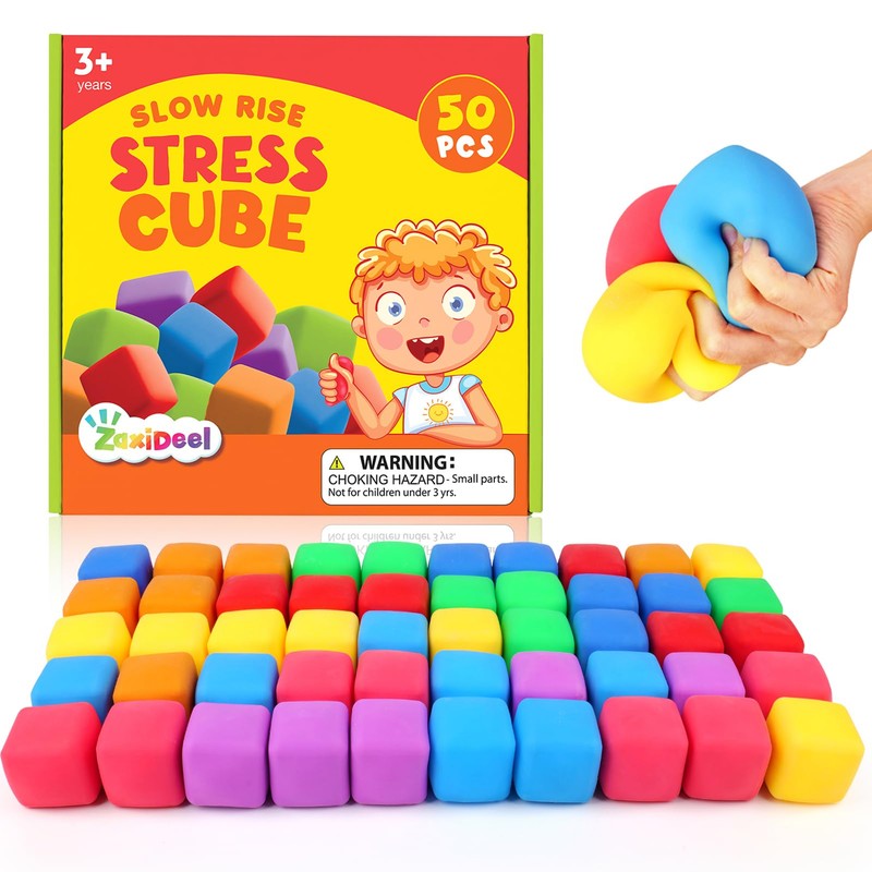 - 50 Pack Fidget Toy Stress Cube: Unbox a Large set of 50 soft, slow-rebound cubes in assorted colors! Each 2-inch cube is perfect for squeezing, stretching, tossing, and pulling—helping to ease stress, keep focus, and encourage relaxation. Whether you're in class, tackling homework, or preparing for exams, these stress cubes are essential for staying calm and collected. A must-have for school, work, or everyday stress relief