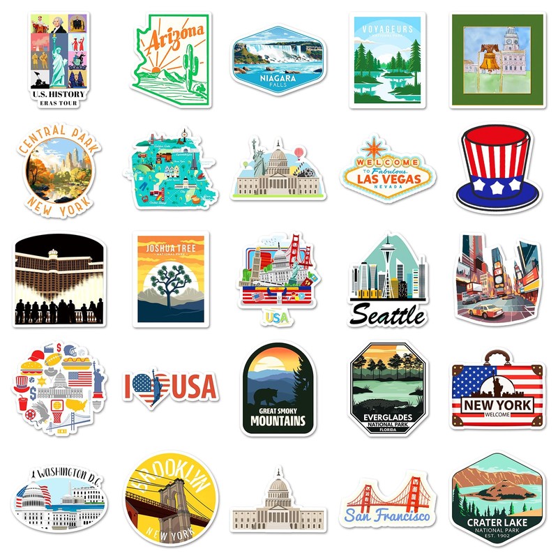 50 Packs State Travel USA Map Stickers Water Bottles Laptop Phone Motorcycle Computer Guitar Skateboard Hydroflasks US State Vinyl Sticker Waterproof Aesthetic Trendy Decals for Teens Girls Adults