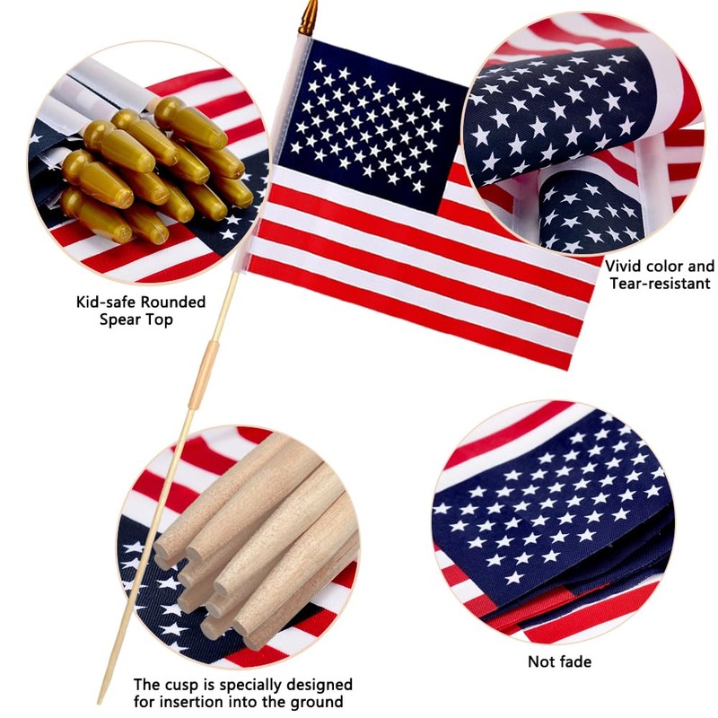 50 Pcs 12x18 Inch American Flags on Stick, American Flags, USA Stick Flag wit...