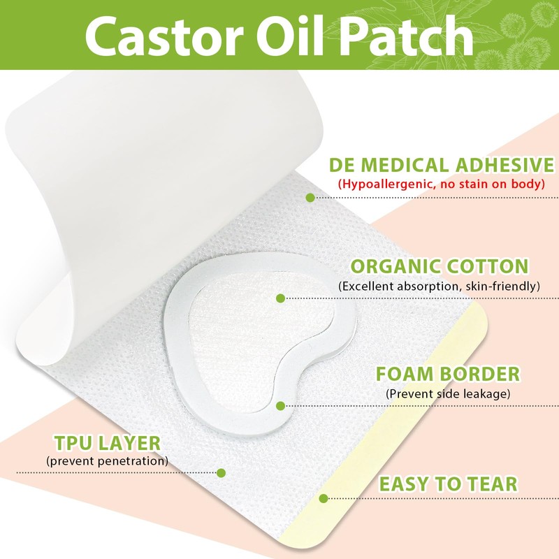 - CLEAN AND TIDY, NO TIES REQUIRED - Each castor oil patches features a four-layer leak-proof design with absorbent cotton and waterproof backing - no spills, no cleaning, no extra ties required. Simply peel off, apply oil, stick, and you're ready to go. Perfect for beginners and busy lifestyles.
