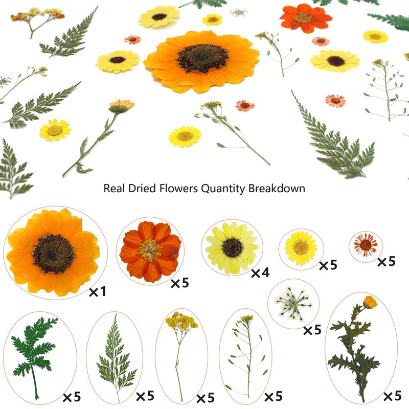 - 🌻Wide Applications: Natural dried flowers can be widely used in resin crafts, aromatherapy, soap, candle making, DIY bookmarks, photo frames, necklaces, manicures, table lamps, earrings, mobile phones, murals, Christmas gifts, note cards, stationery, wedding invitations, envelopes and other decorations