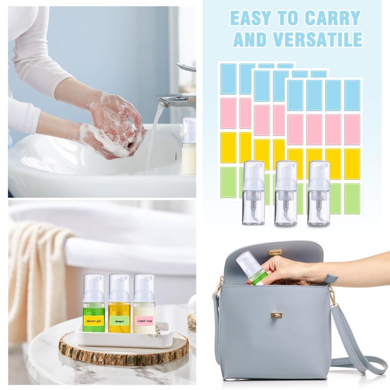 - Versatile use:These small travel foaming pump bottle are suitable for a variety of applications,including hand soap,face cleanser,foaming soaps and more.Their foam pump bottle portable design makes them suitable for travel,camping,hiking,business trips,and everyday use