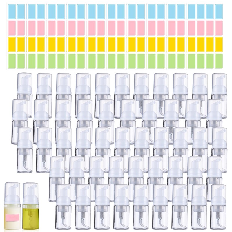 - Package Included:50 pcs of travel size foaming pump bottle and 160 colorful labels, each with a capacity of 30 ml/1 oz.This foam pump bottle ample quantity ensures you have enough for your needs and replacements,enough share these handy travel foam pump bottle with family and friends